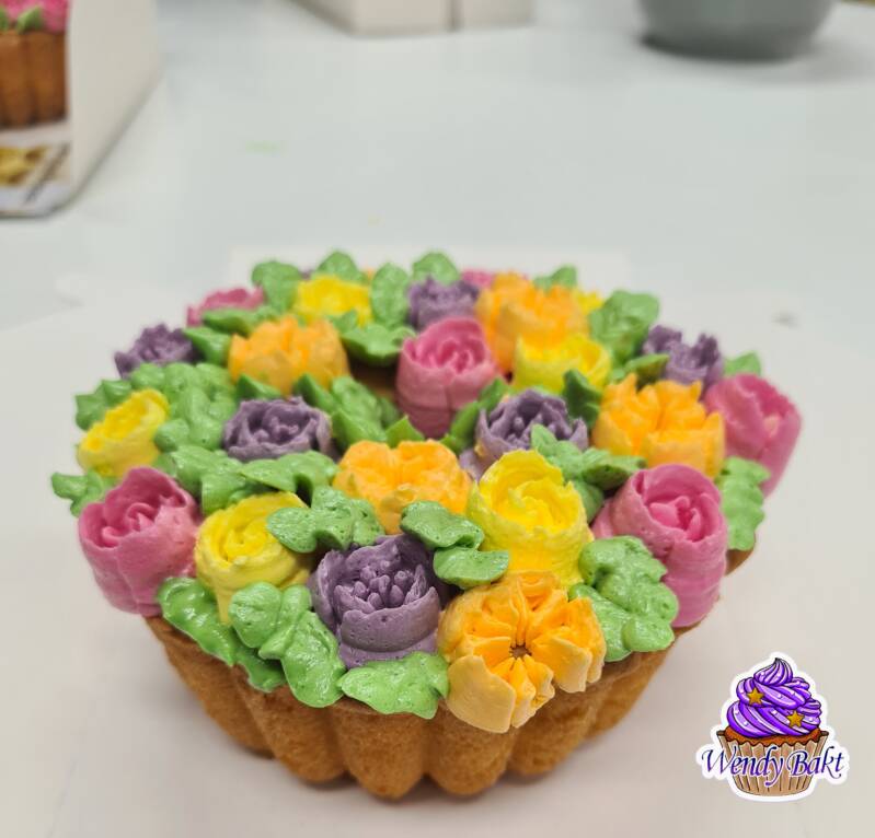 Cake met botercreme bloemen.